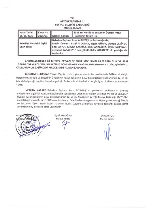 OCAK/2026 DÖNEMİ MECLİS KARARLARI