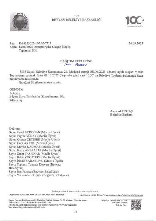 EKİM/2025 DÖNEMİ MECLİS TOPLANTISI DAVETİYE YAZISI