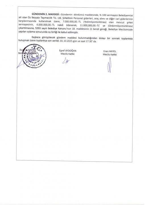 EYLÜL/2024 DÖNEMİ MECLİS KARARLARI
