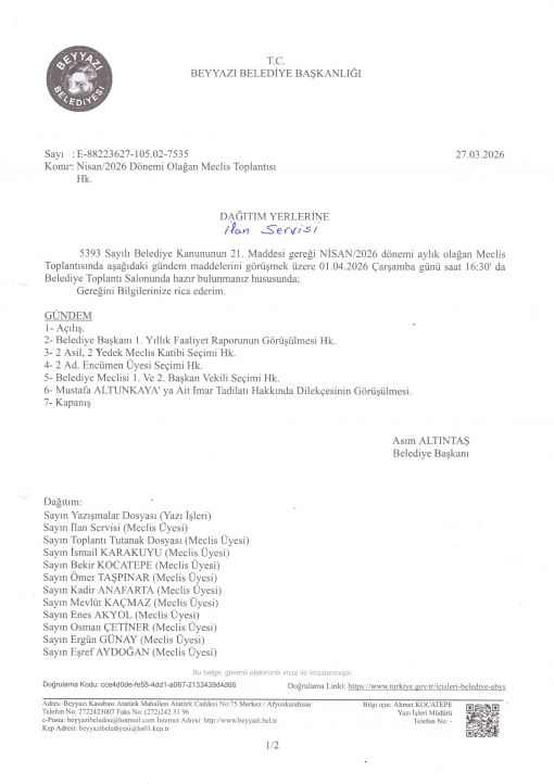 NİSAN/2025 DÖNEMİ MECLİS TOPLANTISI DAVETİYE YAZISI